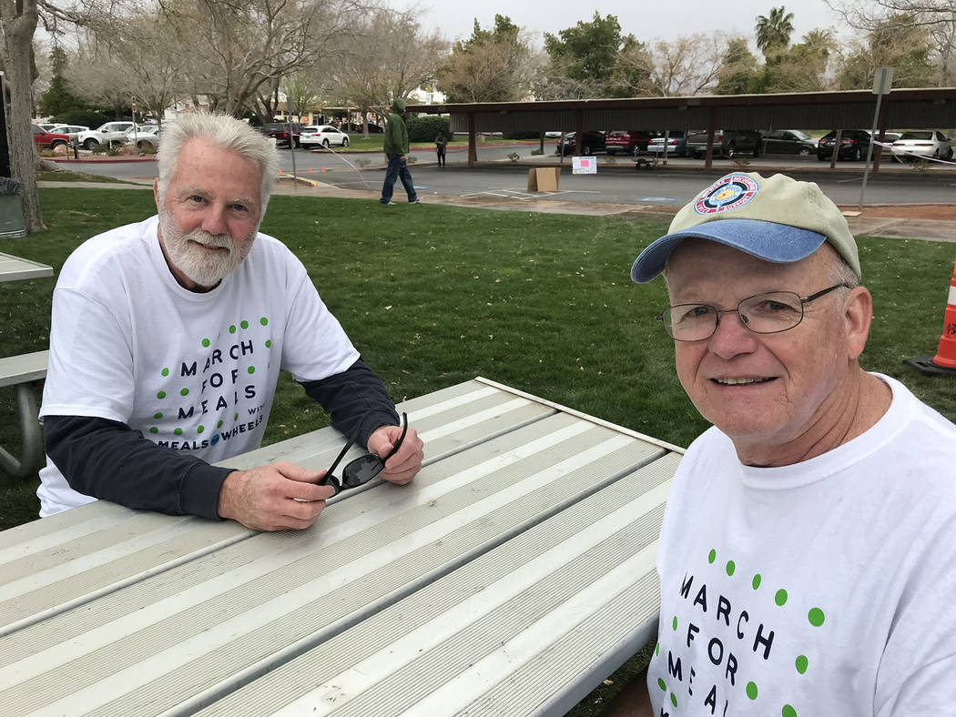 Kevin Shambarger, left, and Kevin Britt were at Saturday’s Rock, Roll & Stroll in Bicentennial Park to help raise awareness and funds for the Senior Center of Boulder City and its Meals on Wheels program.