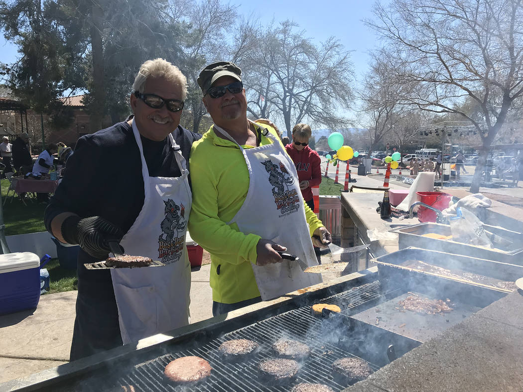 Dale Ryan, left, and Andy Anderson manned the barbecue grill, cooking hamburgers and hot dogs, at Saturday’s, March 16, Rock, Roll &Stroll to raise funds for the Senior Center of Boulder City and its Meals on Wheels program.