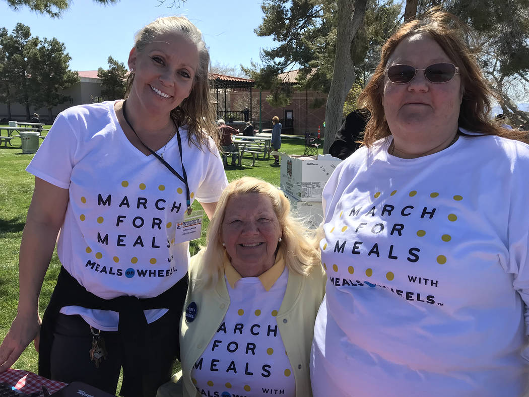 Victoria Mason, from left, executive director; Darlene Looney, board member; and Melinda Reddin, kitchen manager, of the Senior Center of Boulder City were among those who came out to Bicentennial Park on Saturday, March 16, 2019, to support the Rock, Roll & Stroll fundraiser for the Meals on Wheels program.