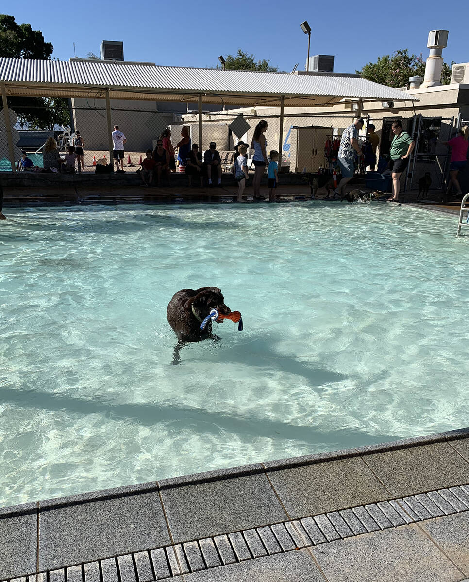 Ammo, a chocolate labrador, enjoyed playing in the pool Saturday, Sept. 24, during the Soggy Doggy Pool Pawty. He is owned by Bill Avery.