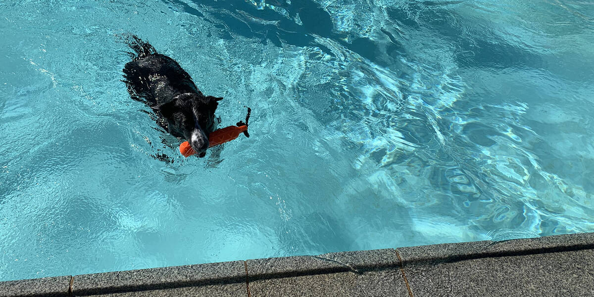 Jett, a border collie owned by Vallerie McCoy, retrieves a toy during the Soggy Doggy on Saturday, Sept. 24, 2022, at the Boulder City Pool.