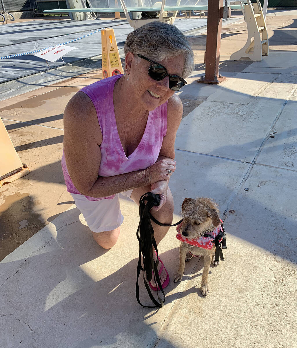 Michele Schiemer and Oakley, a Jack Russell mix, were among those attending the Soggy Doggy Pool Pawty on Saturday, Sept. 24, at the Boulder City Pool.