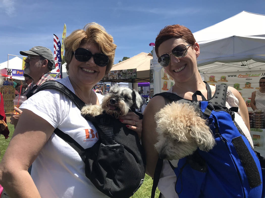 Candy Moncayo, left, and Heather Abel of Boulder City strolled through the Spring Jamboree with their dogs Dee Dee and Reno.