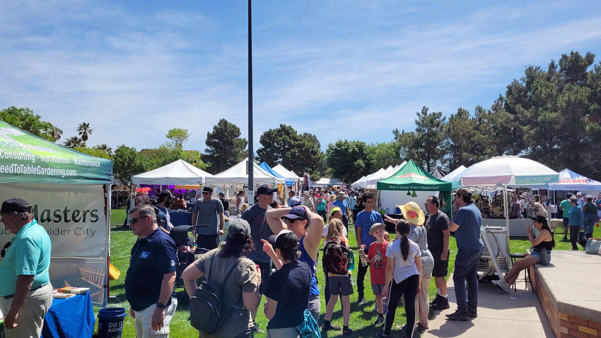People fill Bicentennial Park during Spring Jamboree on Saturday in downtown Boulder City.