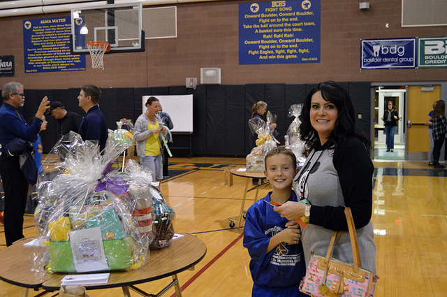 Michelle Gibbons and her son Jake enjoyed the festivities during the Tricky Tray fundraiser Nov.9 at Boulder City High School gym.