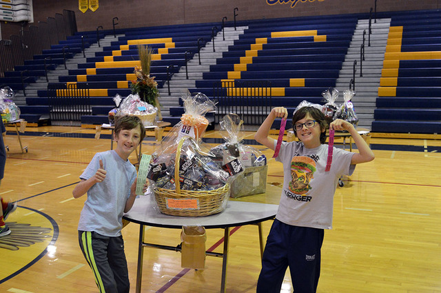 Sam, left, and Tobias Breeden show off their tickets at the Tricky Tray raffle on Nov. 9 at the Boulder City High School gym.