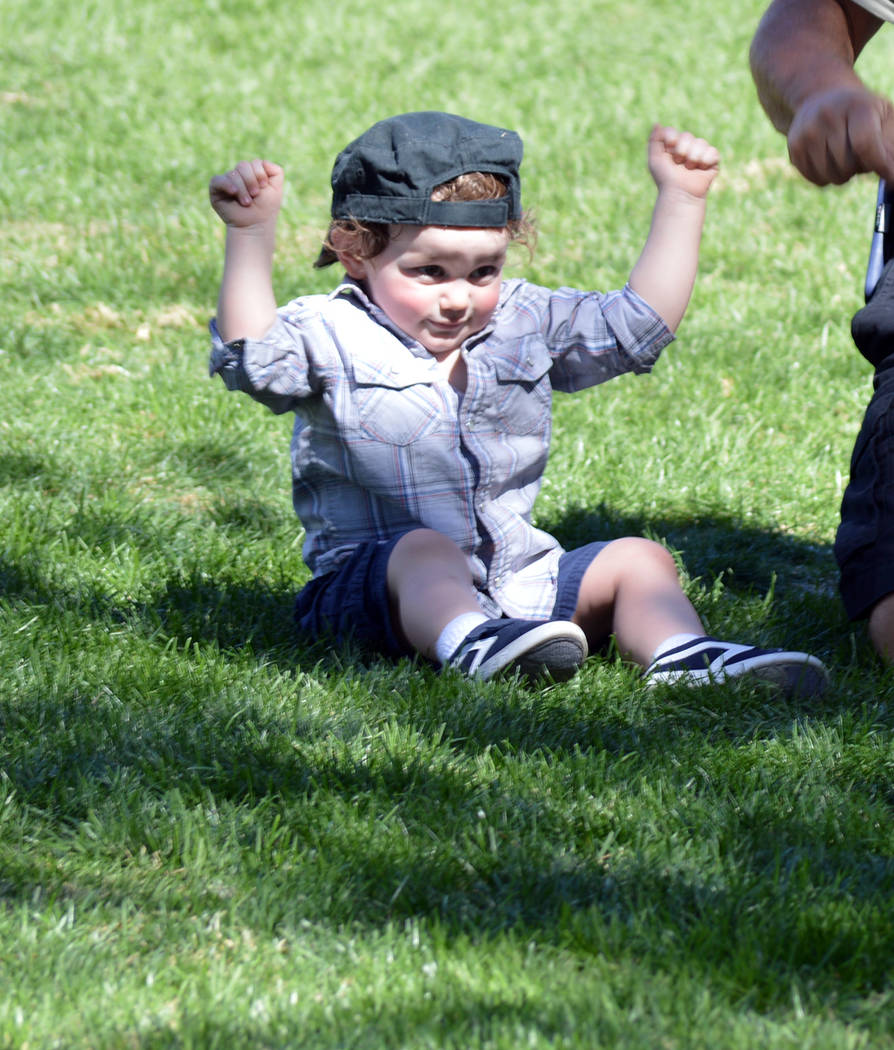 Almost 2-year-old Isaac Maguire dances to the music at the 21st annual Wurstfest on Saturday.