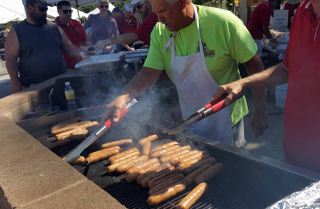 Dale Ryan makes sure the brats are grilled to perfection for those attending Wurstfest on Saturday.