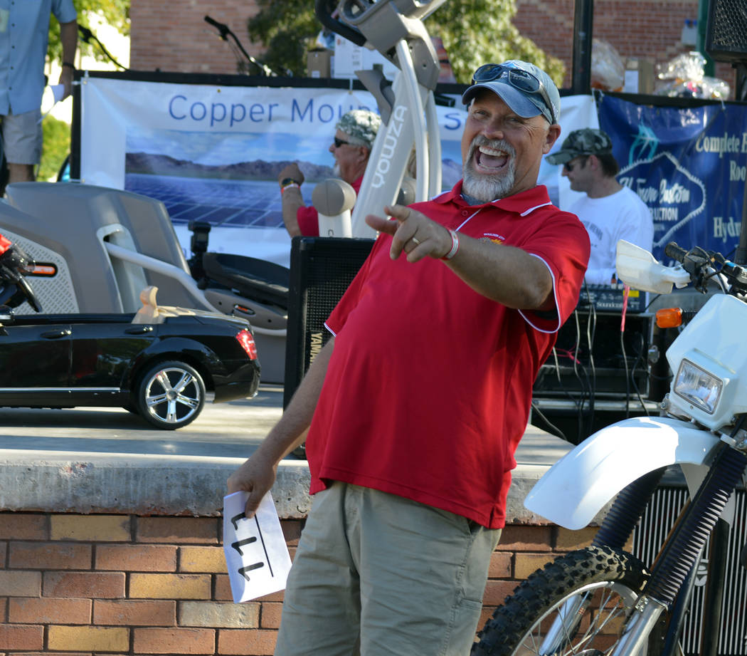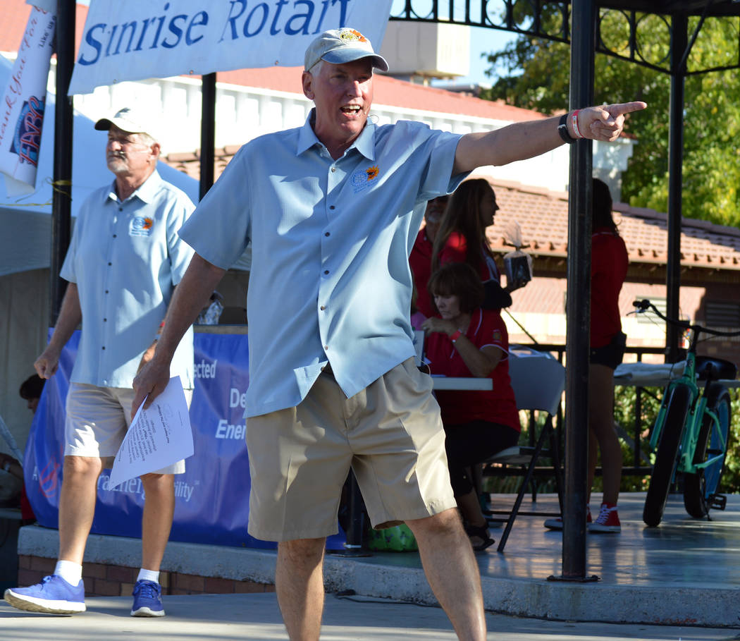 Robert Merrell leads the live auction at Wurstfest on Saturday. The event is a fundraiser for the Boulder City Sunrise Rotary.