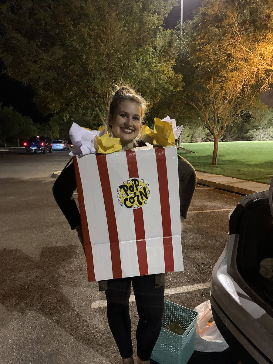 Karli Allison of Serenity Salon and Spa came dressed as popcorn to Saturday’s, Oct. 24, drive-thru Trunk or Treat celebration at Veterans’ Memorial Park. The holiday event was sponsored by the Boulder City Chamber of Commerce.