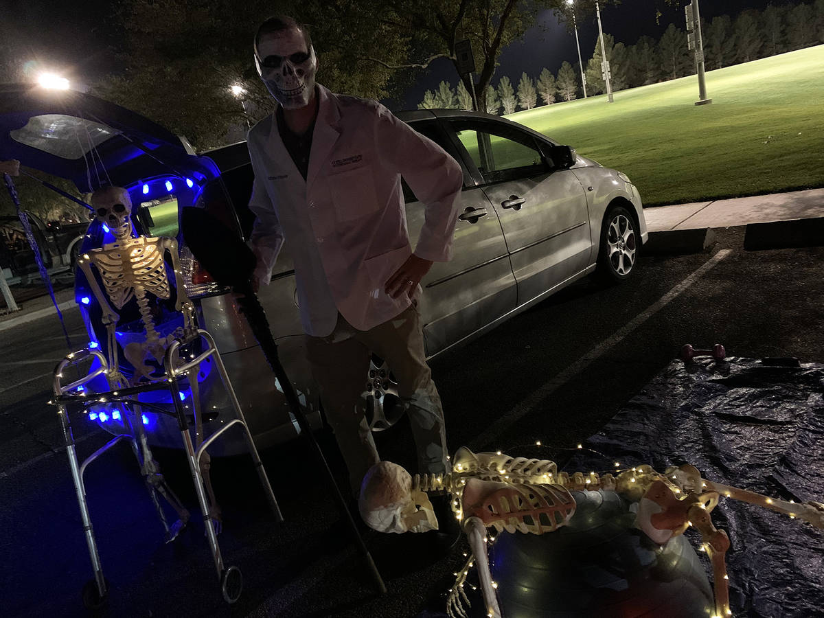 Matthew Wittwer of Meaningful Gains Therapy brought along a skeleton crew to help pass out candy Saturday, Oct. 24, at Trunk or Treat in Veterans’ Memorial Park. The drive-thru Halloween celebration was sponsored by the Boulder City Chamber of Commerce.