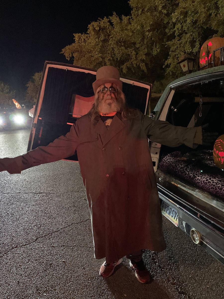 Roger Devlin represented Tom Devlin’s Monster Museum at Saturday’s drive-thru Trunk or Treat celebration at Veterans’ Memorial Park. His costume included an extra long arm so he could distribute candy to children in a safe manner.