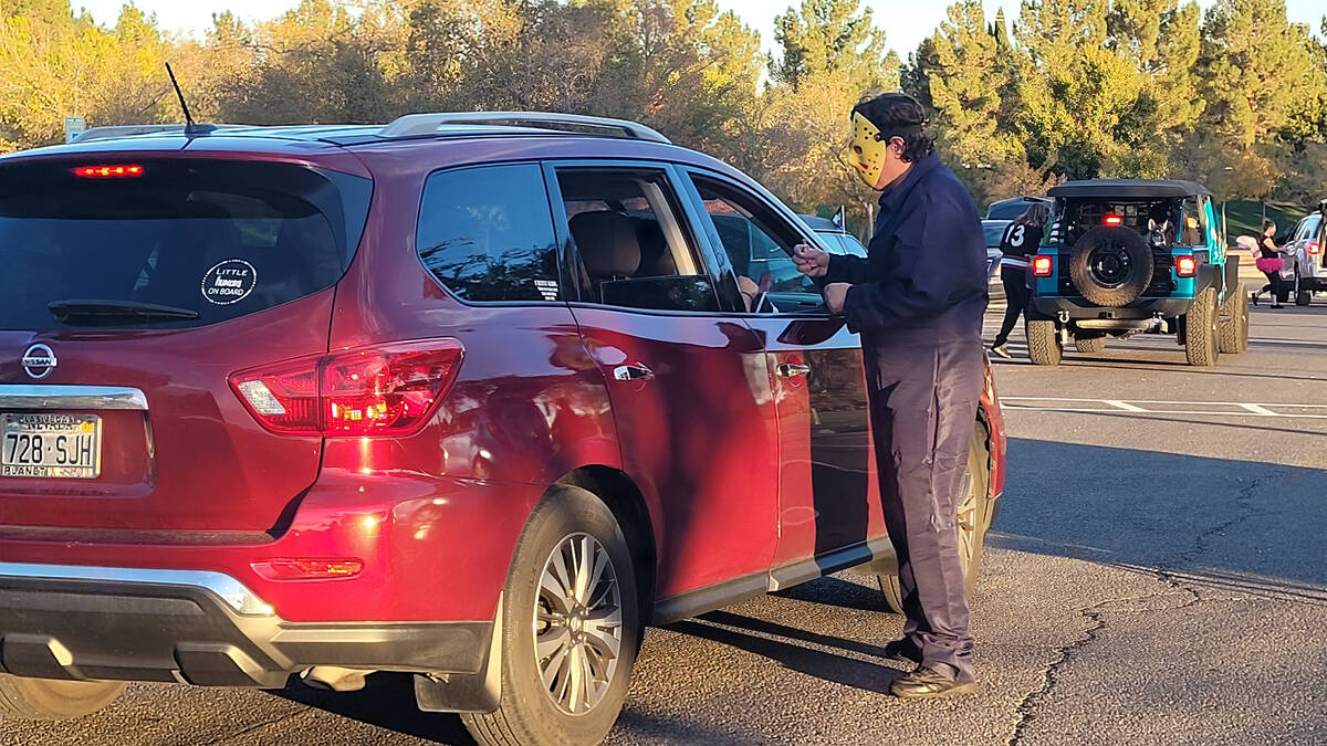 Robert Reiss of Snap Fitness hands out candy at Trunk or Treat on Saturday Oct. 23 at Veterans’ Memorial Park in Boulder City.