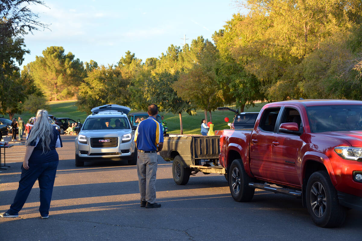 The 2021 Trunk or Treat on Saturday was a drive-thru affair like the previous year. Cars drove through the parking lot at Veterans’ Memorial Park while local businesses and residents passed out candy to children inside the vehicles.