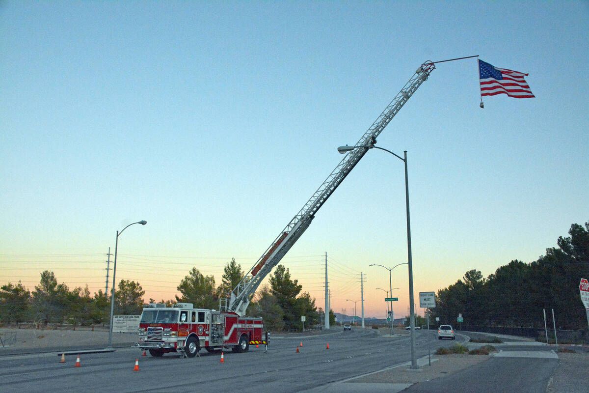 The Boulder City Fire Department placed a flag at an entrance to the Southern Nevada Veterans Memorial Cemetery for Veterans Day on Nov. 11.