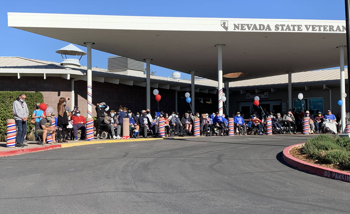 Residents of the Southern Nevada State Veterans Home were treated to a patriotic parade to celebrate Veterans Day on Nov. 11. The parade featured emergency vehicles, the Boulder City Police Department’s mounted unit, cars, motorcycles and two goats.