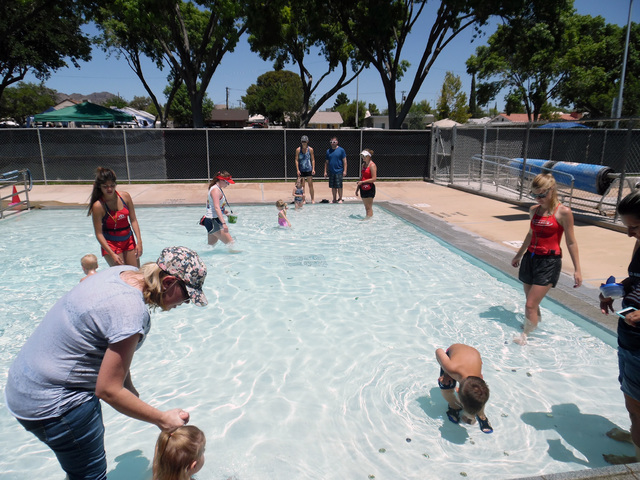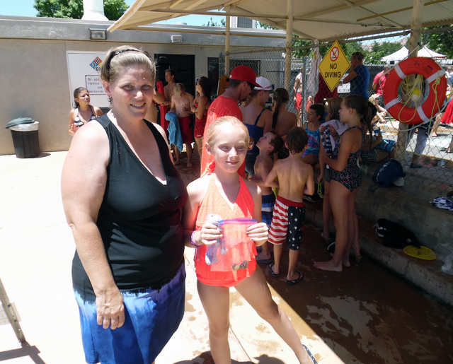 Lindsey, left, and Mason Ford, 10, enjoyed cooling off and diving for coins at the Boulder City Municipal Pool during the 68th annual Damboree Monday, July 4, 2016. Hunter Terry/Boulder City Review