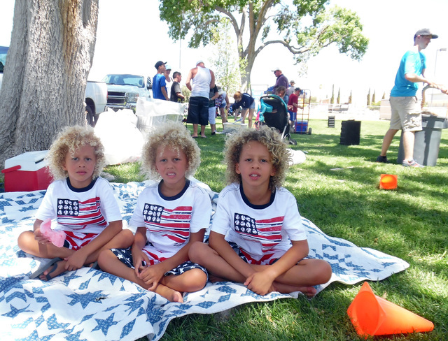 Axl, 6, from left, Sawyer, 6, and Vann Watkins, 7, enjoyed a break from the Las Vegas heat with an afternoon of fun and games at Broadbent Park during the 68th annual Fourth of July Damboree celebration. Hunter Terry/Boulder City Review.