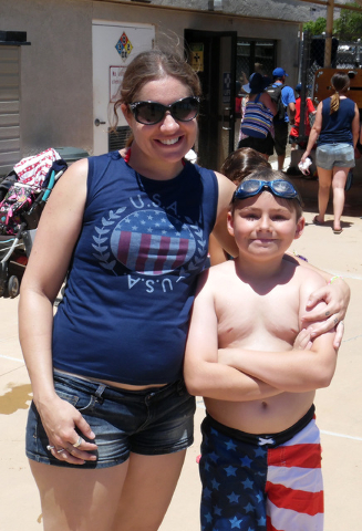 April, left, and Addison Roberts, 9, returned to Boulder City from Las Vegas to enjoy the coin toss and all the events at their fourth, and the 68th annual Damboree July Fourth celebration. Hunter Terry/Boulder City Review
