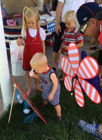 Twenty-two month old Emmett Losee plays one of the games in Broadbent Park’s Kids Zone during the Damboree celebration on Monday, July 4, 2016. His big sister, Lainey Losee, 7, looks on. Hali Bernstein Saylor/Boulder City Review
