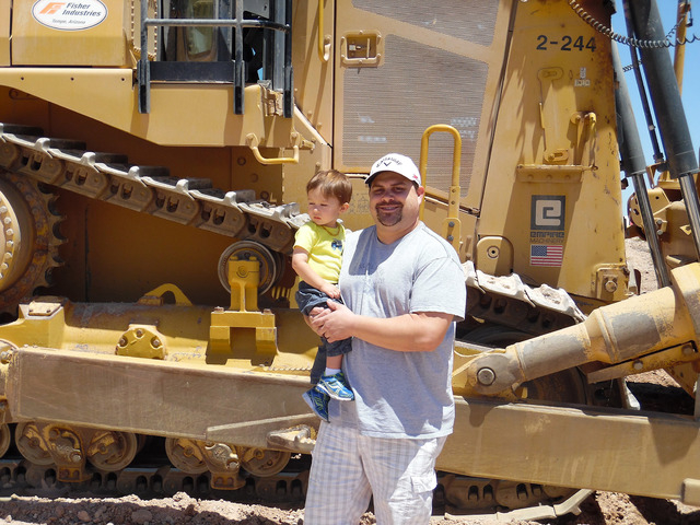 Johnny Hogsette and his son Dominic, 2, drove out from Las Vegas for Heavy Duty Play Day on Saturday.