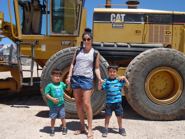 From left, Brody, Sally and Noah Rahaim made it out from Las Vegas to explore the enormous construction machinery.
