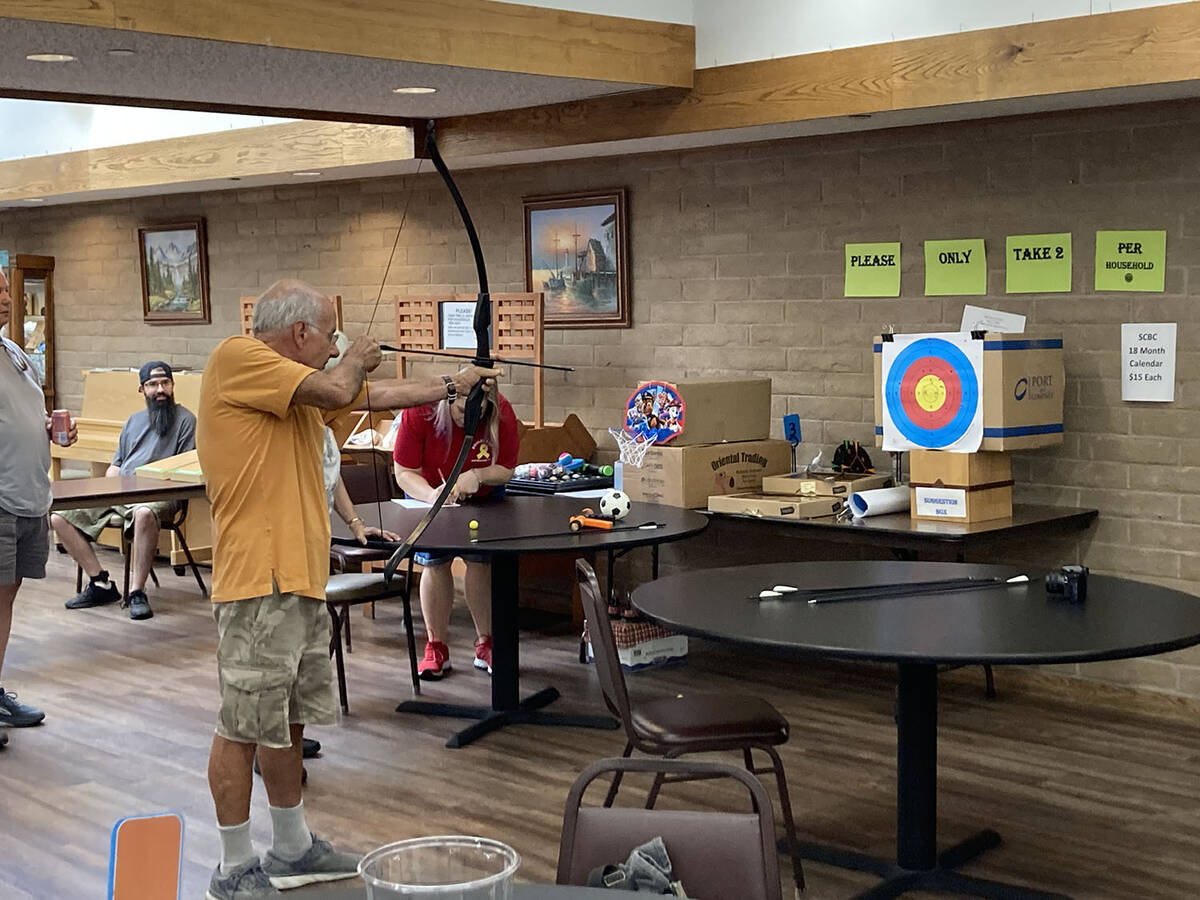 Participants then took turns competing in the dining area in the following events: cornhole, archery, miniature basketball, miniature darts, high or low dice, miniature soccer, miniature golf, ring toss, and cider pong instead of beer pong.