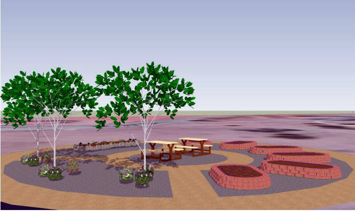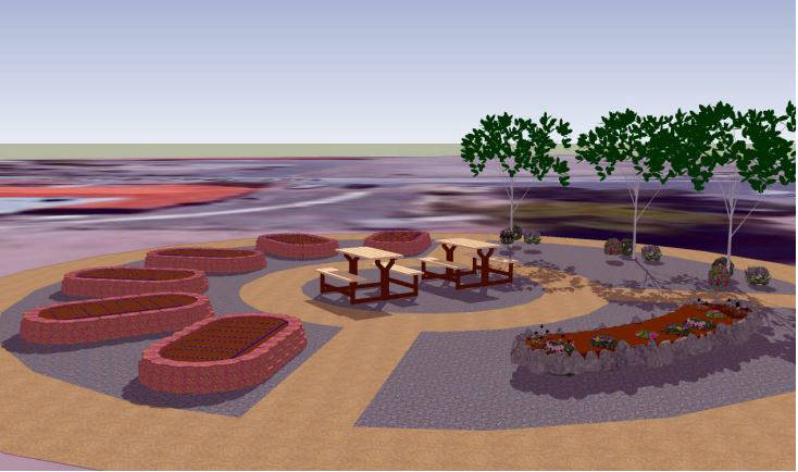 Phase one includes six brick raised-garden beds, a pollinator garden, fruit trees and herb plants. There also will be an area where people can sit, eat and hold small classes.