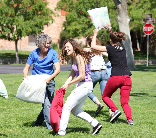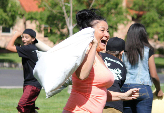 Several Boulder City residents celebrated International Pillow Fight Day Saturday afternoon with some good old-fashioned fun.