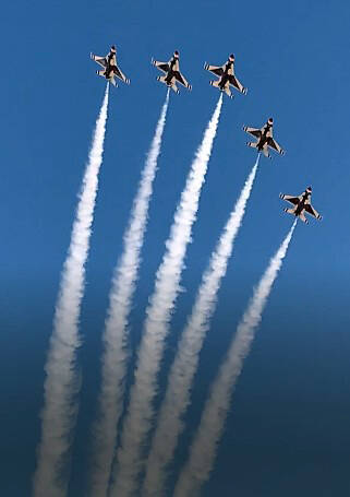 At a recent invitation-only “Evening With the USAF Thunderbirds,” I had an opportunity to briefly speak with Elliott. One of the questions I asked him concerned the combat-readiness of the Thunderbird pilots. There is little doubt that the men and women who fly their aircraft inches from each other while conducting aerial maneuvers are highly qualified and regularly trained. But should the United States ever have to go to war, what are the qualifications of the Thunderbirds? Elliott was quick to respond that in addition to regular Thunderbird training, the pilots also go through all the normal Air Force training that all its pilots must go through.