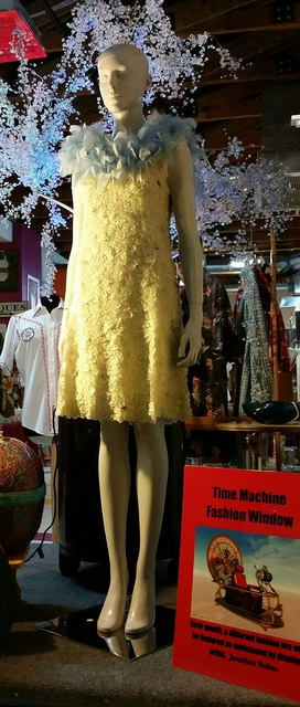 The display was conceived by Jonathan Bollas, one of Bella’s vendors who specializes in vintage clothing, and was inspired by the 1960 film “The Time Machine,” based on the H.G. Wells novel.