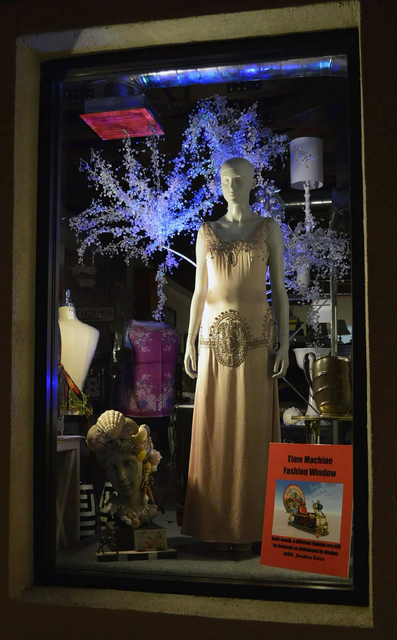 To help it stand out among the city’s downtown antique and vintage-ware shops, Bella Marketplace, at 1212 Wyoming St., has created an ever-changing Time Machine Fashion Window that highlights fashions from a different era each month.