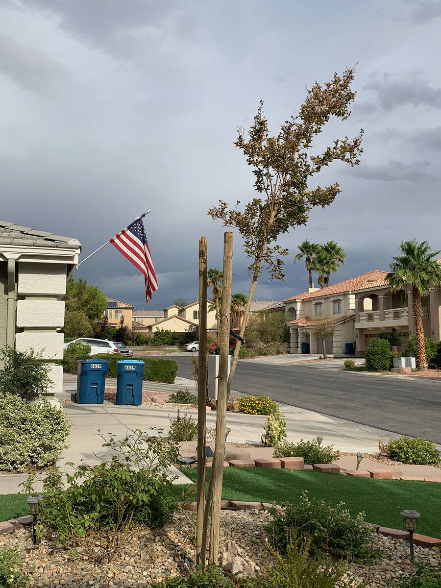 Without natural shade protection from the desert sun, thin barked trees like bottle tree, palo verde, mesquite and ash can get sunscald on a smaller trunk and stems facing the sun. Sunscald can damage, contribute to insect problems or even kill the tree.