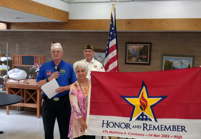The Veterans of Foreign War, Post 36 chapter, presented Pat Marek with an Honor and Remember flag Saturday in remembrance of her son, Army Cpl. Matthew Commons, after whom the Boulder City post is named.