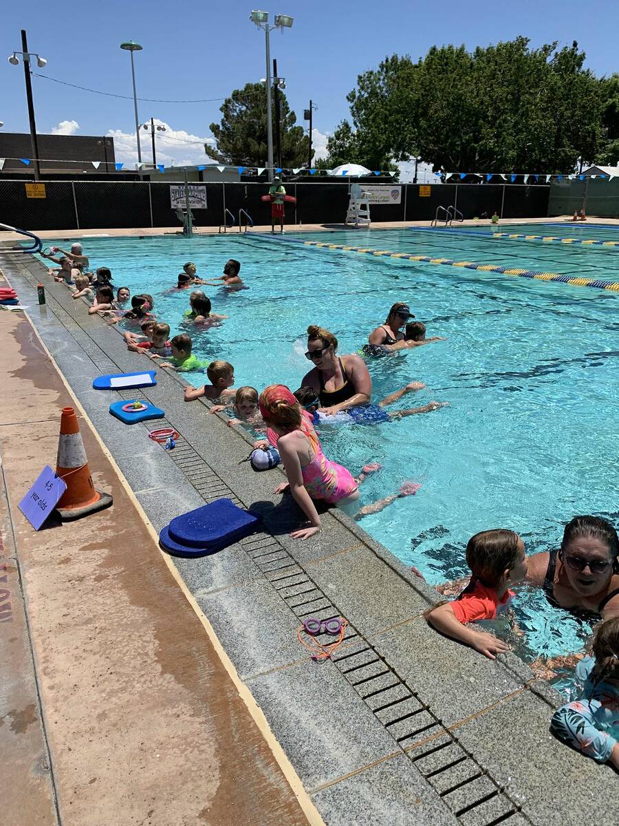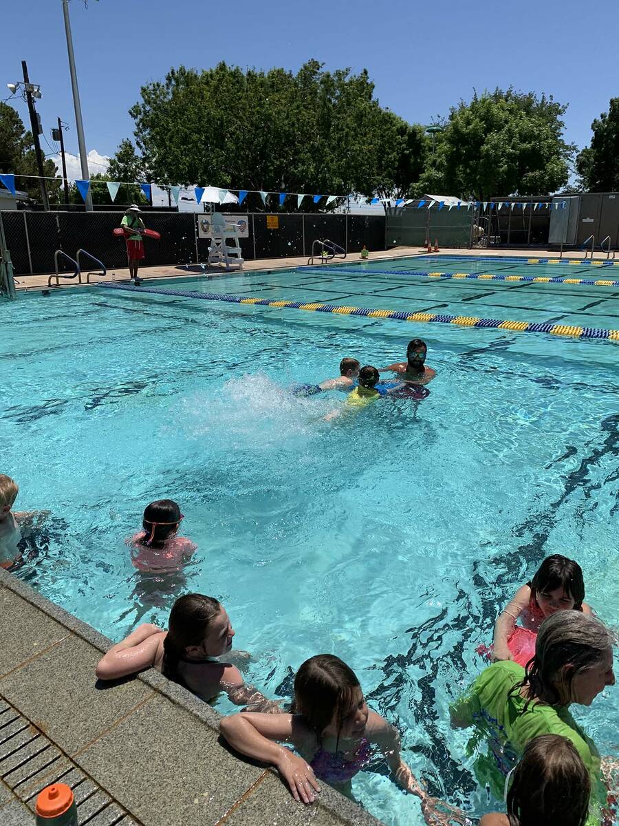 In Boulder City, 20 children were officially registered, though there were actually 32 children in the pool learning water safety tips. There were an additional 17 volunteer instructors and lifeguards who participated.
