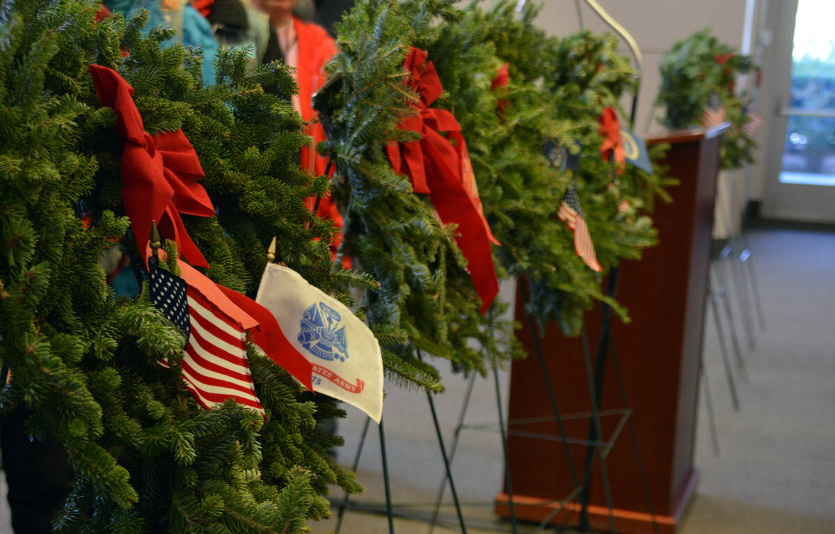 1 SPECIAL SALUTE: Fresh holiday wreaths will be placed on the graves of veterans Saturday morning at the Southern Nevada Veterans Memorial Cemetery as part of the nationwide Wreaths Across America observance. A short ceremony in the chapel, and instructions about how to properly place the wreaths and honor the veterans’ service, will begin at 9 a.m. The cemetery is at 1900 Veterans Memorial Drive.