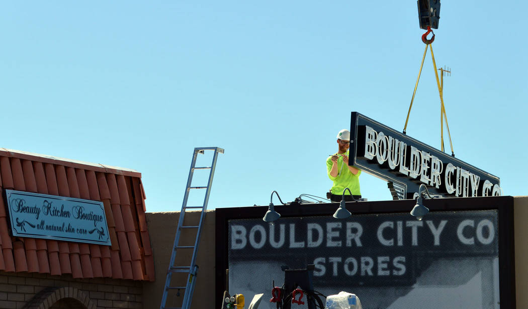 A new sign for the Boulder City Co. Store, 525 Avenue B., was installed in August by a worker with High Impact Signs. Owner Tara Bertoli said the sign is a replica of the original one that was at the store when Six Cos. operated it in the 1930s for the Hoover Dam workers.