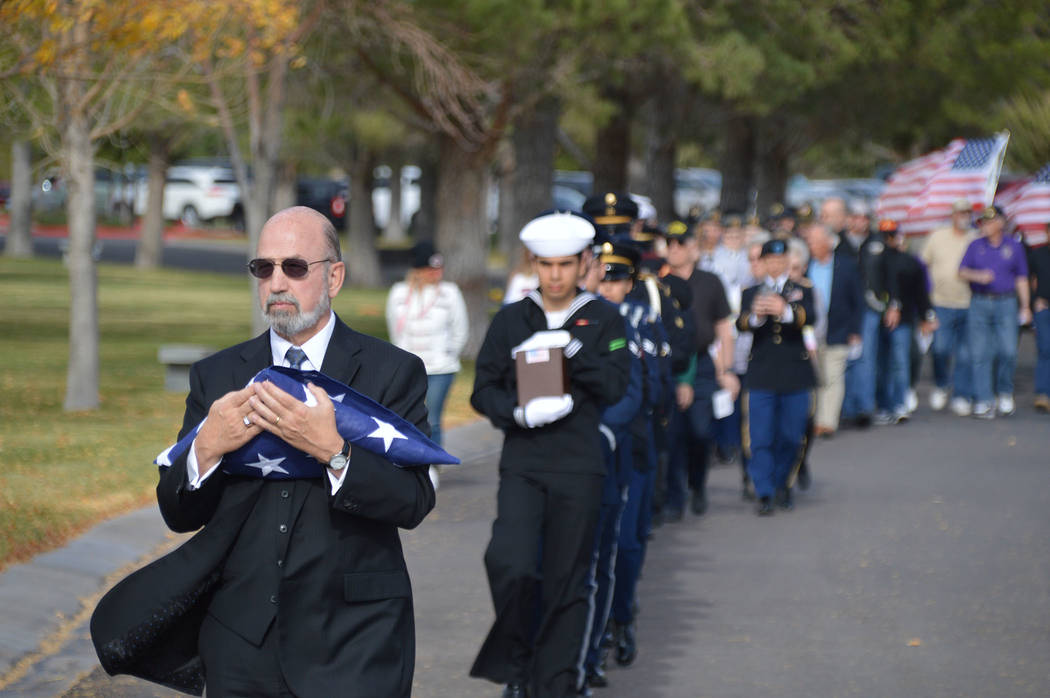 Fred Wagar, deputy director of Nevada Department of Veterans, led the honorable transfer to the final resting place for 17 unclaimed veterans at a special service at the Southern Nevada Veterans Memorial Cemetery on Nov. 19.