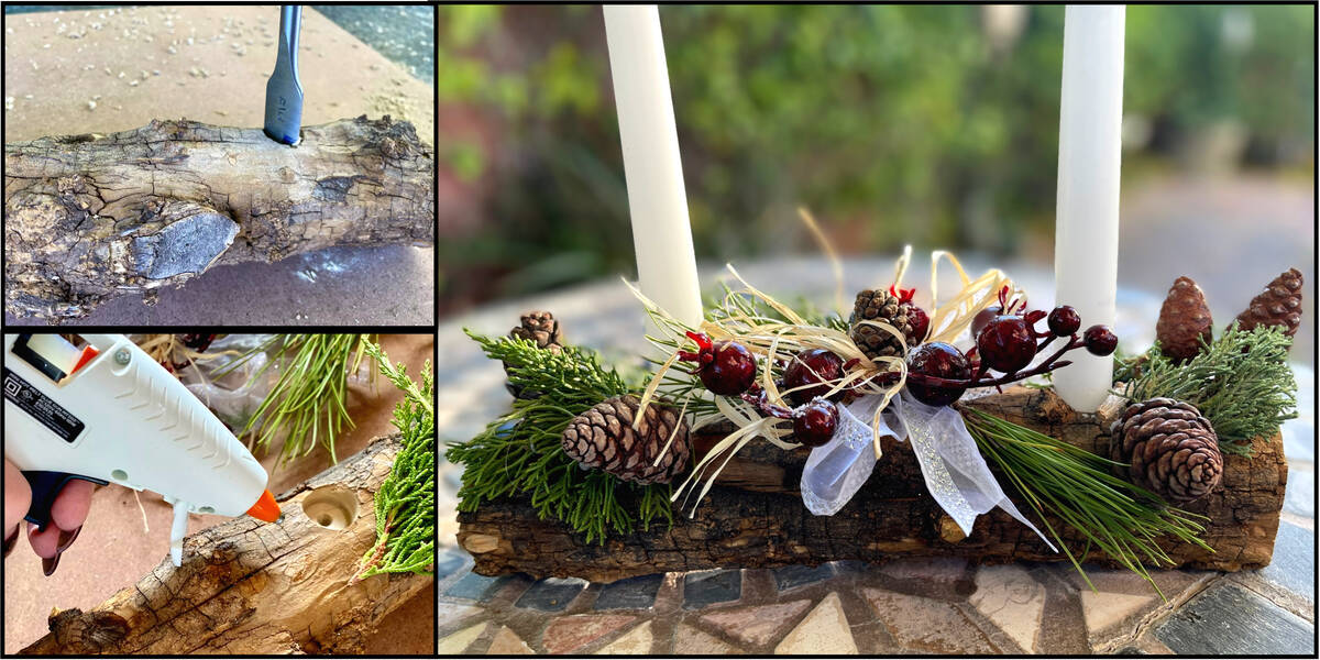 I relish making a DIY Yule log centerpiece this time of year. With a small log, clippings from nature, mini decorations, a glue gun, and candles with a matching diameter paddle bit (to drill holes for candles), you can create a stunning holiday tablescape. It’s a fun project that the whole family can get it on. There’s a great step-by-step on how to build a Yule log centerpiece at HearthandVine.com