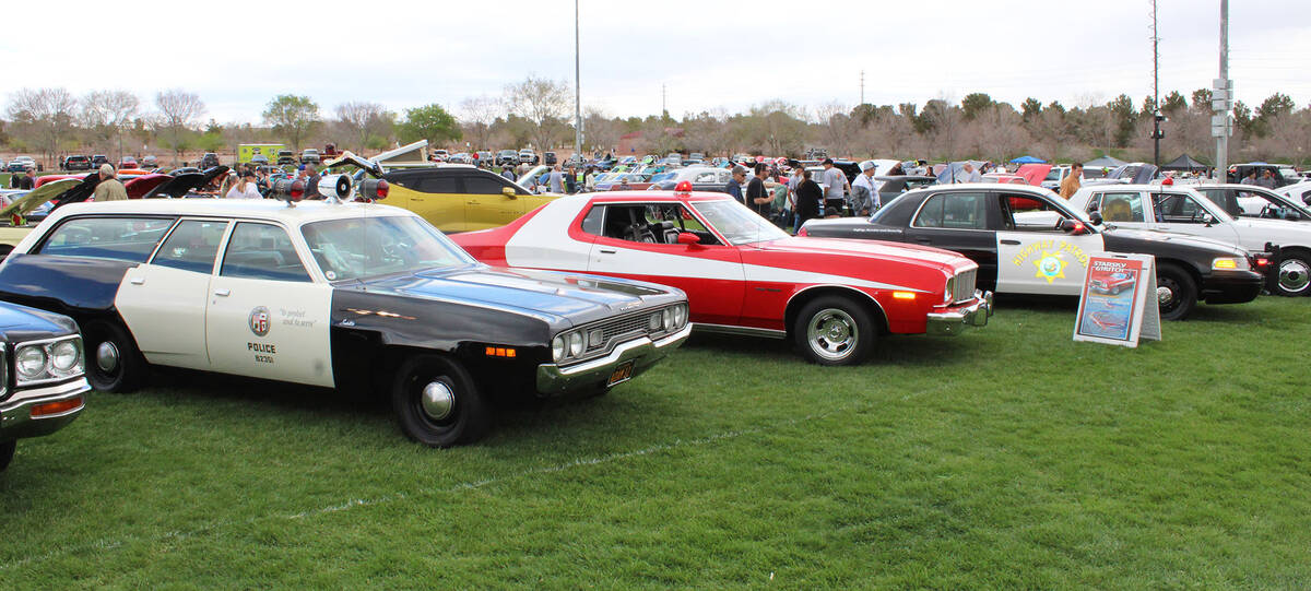 Law enforcement vehicles from various agencies and eras were on display Saturday, including those similar to ones featured in three popular TV shows (from left) “Adam-12,” “Starsky and Hutch,” and “CHiPs.”