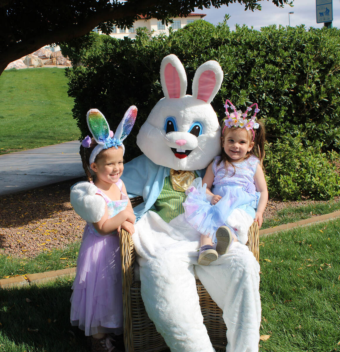 Meadow and River McIntyre were all smiles Saturday with the Easter Bunny just before the egg hunt at Wilbur Square.