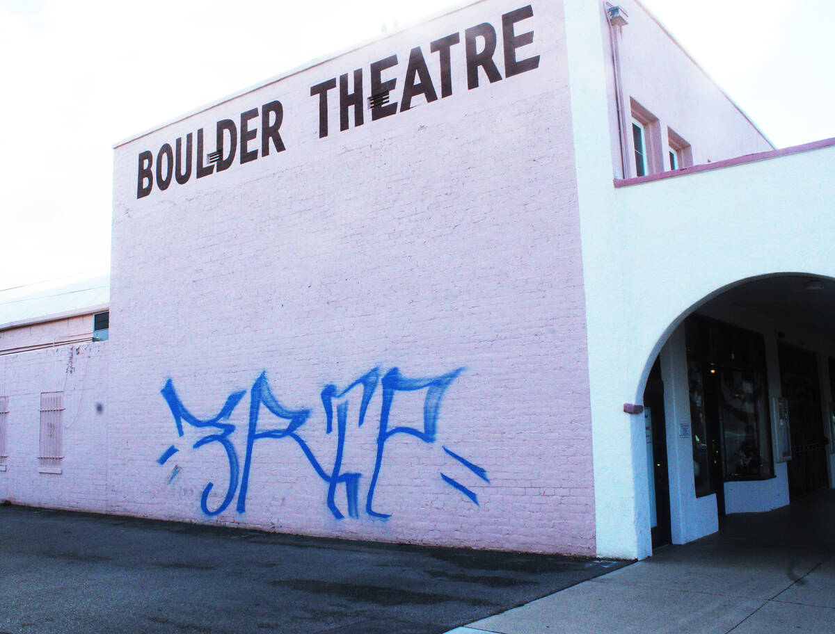 Finally, in a development that brought home the fact that, whether they like it or not, Boulder City residents live in a suburb ofa larger metro area with many of the same issues that plague their “over the hill” neighbors, multiple locations in the historicdowntown area including the old Boulder City Theatre were tagged with huge graffiti logos in the early morning hours of Jan.22.