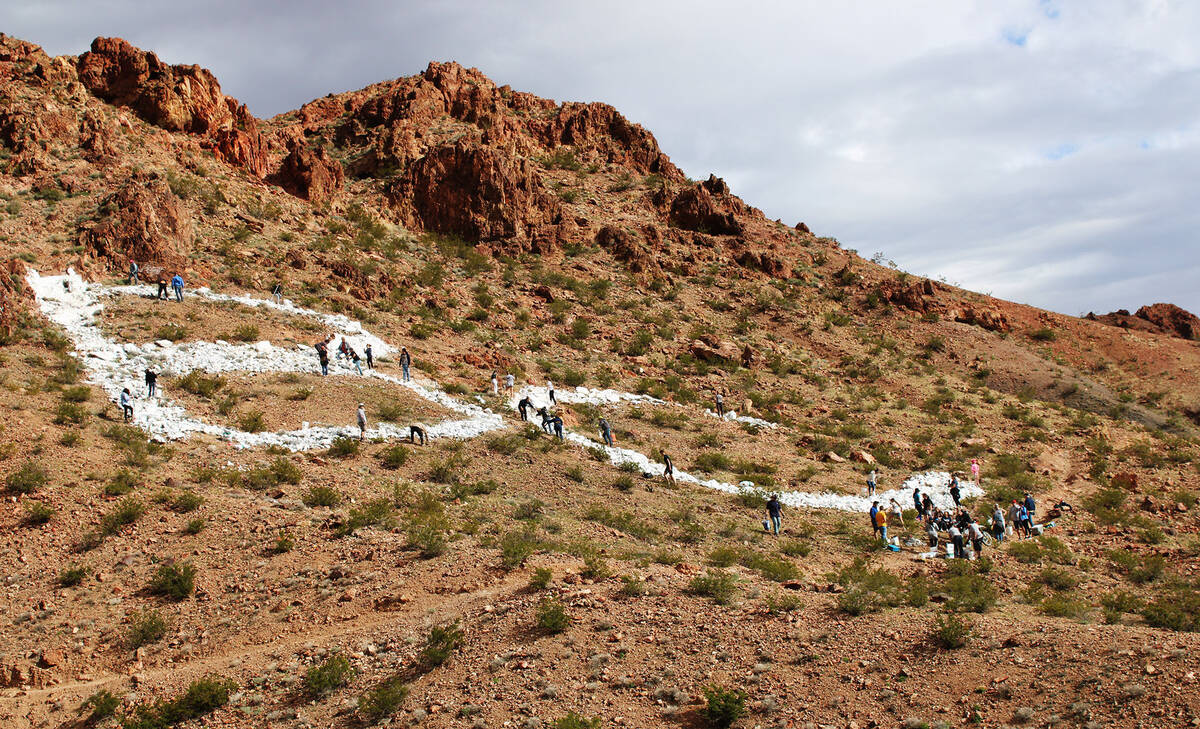 More than a year after a nondescript concrete block wall showed up on the southwest corner of Boulder City Parkway and Veterans Memorial Boulevard, the artwork meant to adorn that wall finally landed in the form of 1,000-pound, 20-foot-wingspan eagle painted by local artist Lynne Jordan. The $75,000 project was funded by the city.