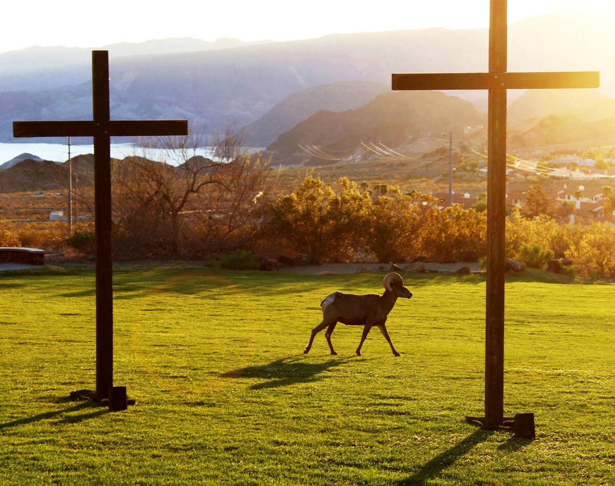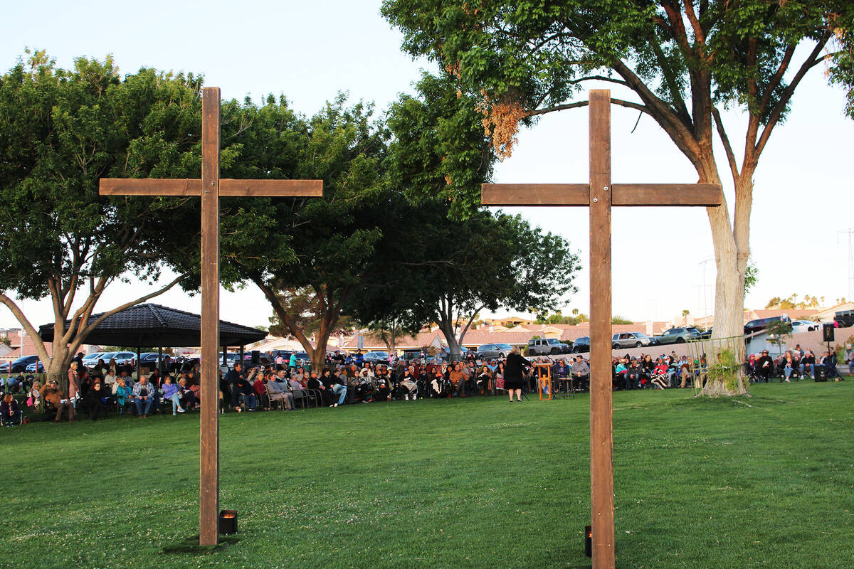 Sunday’s Easter Sunrise Service brought out a large crowd, who were greeted with a sunrise and some of Hemenway Park’s most popular guests, more than a dozen bighorn sheep.