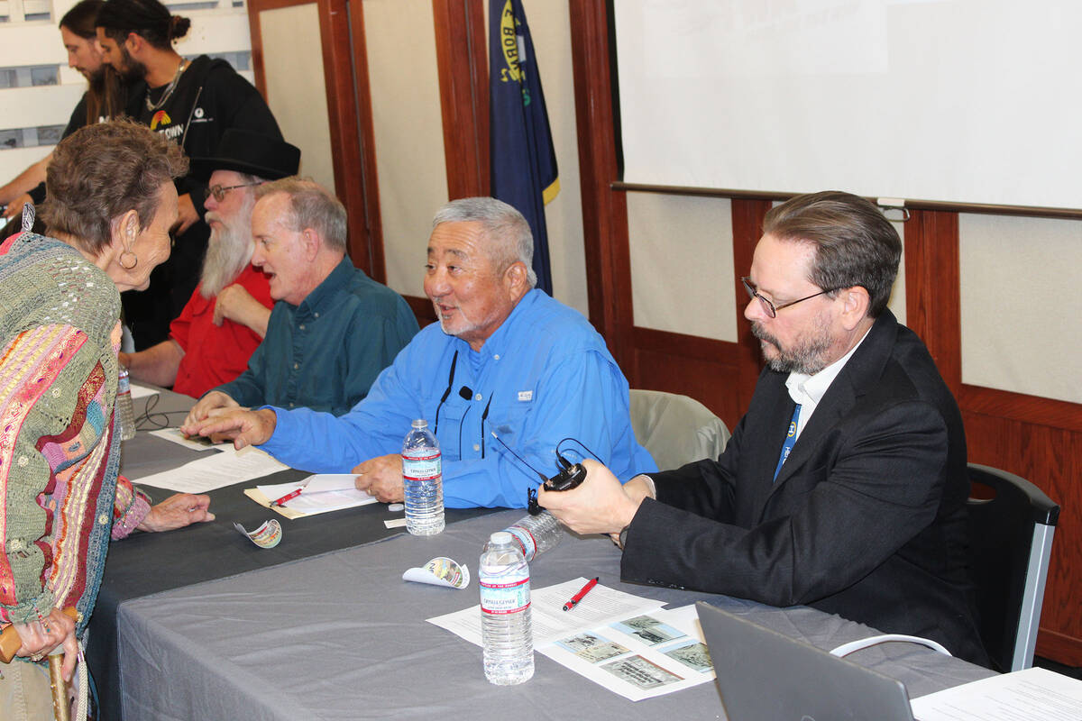 On hand were Nathan Hill, archives and records manager with the city of Henderson and Alan Goya, former chairman of Boulder City’s Historic Preservation Commission. They were joined by Dennis McBride, a Boulder City native, author of many books and retired director of the Nevada State Museum and Mark Hall-Patton, historian, author and retired Clark County Museum administrator. Hall-Patton is also a familiar face for those fans of the TV show “Pawn Stars” thanks to his dozens of appearances.