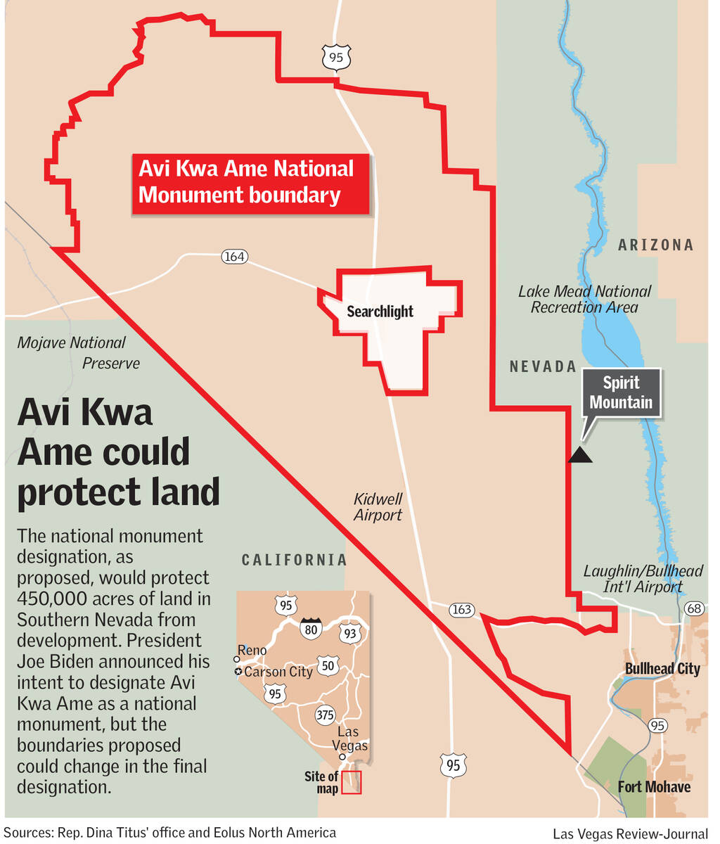Tribes, conservationists and outdoor recreation enthusiasts have worked for years to protect the area in Southern Nevada. The Avi Kwa Ame Coalition leading the effort calls for 450,000 acres of land stretching from the Newberry mountains in the east to the New York, South McCullough, Castle and Piute mountains in the west to be protected and preserved for future generations from development.