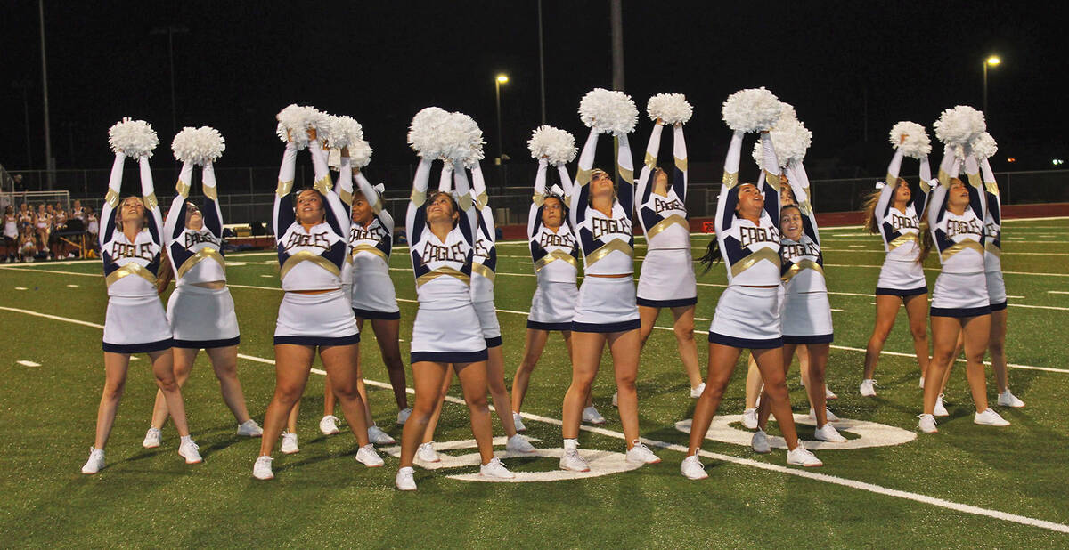 The Boulder City High School cheerleaders performed at halftime of the homecoming game last Friday, ending a week of festivities for the school, which included the annual parade the night before. For more photos, see page 7.