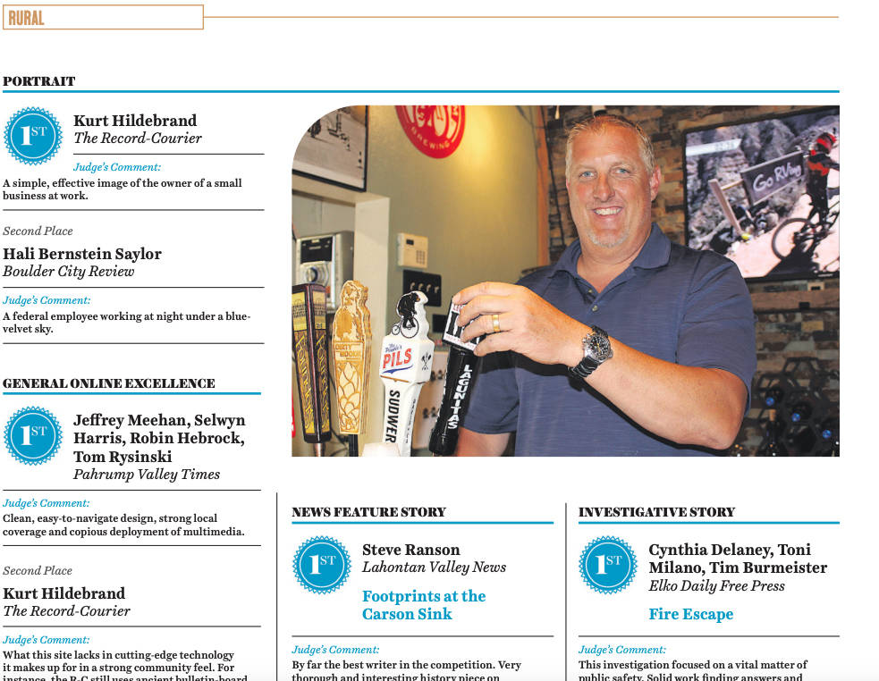 “The quality of work submitted by Nevada newspapers this year was outstanding. We are honored to have been recognized by our peers for our efforts,” said Bernstein Saylor.
