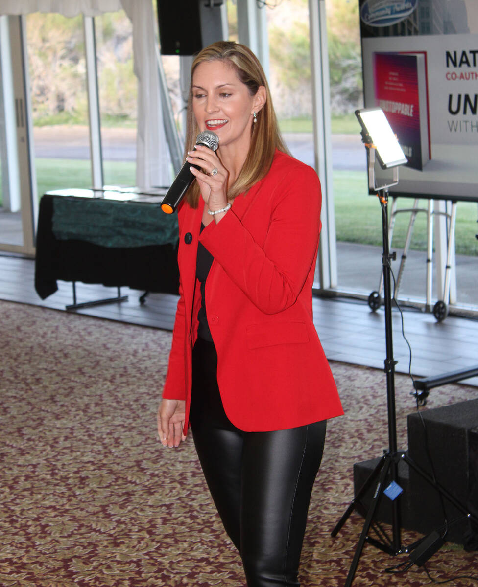 “Everyone in this room is a leader,” she said. “You’re a leader at home, at church, maybe Little League, at work or maybe in the community. So, when I talk about leadership, it’s the kind that shapes communities. My job is to help you get out of survival mode and running on stress and instead, start showing up with energy, purpose and focus.”