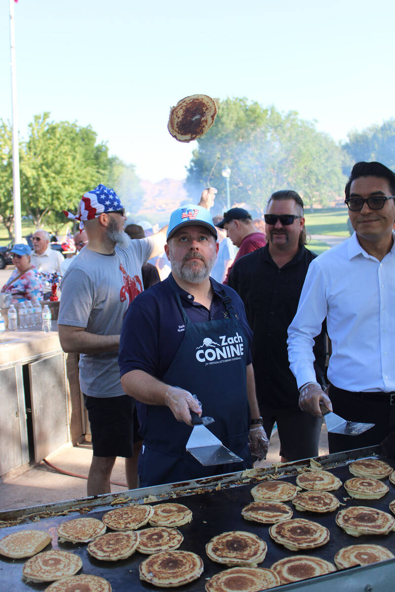 Nevada State Treasurer Zach Conine was again on hand to help with the Rotary pancake breakfast.